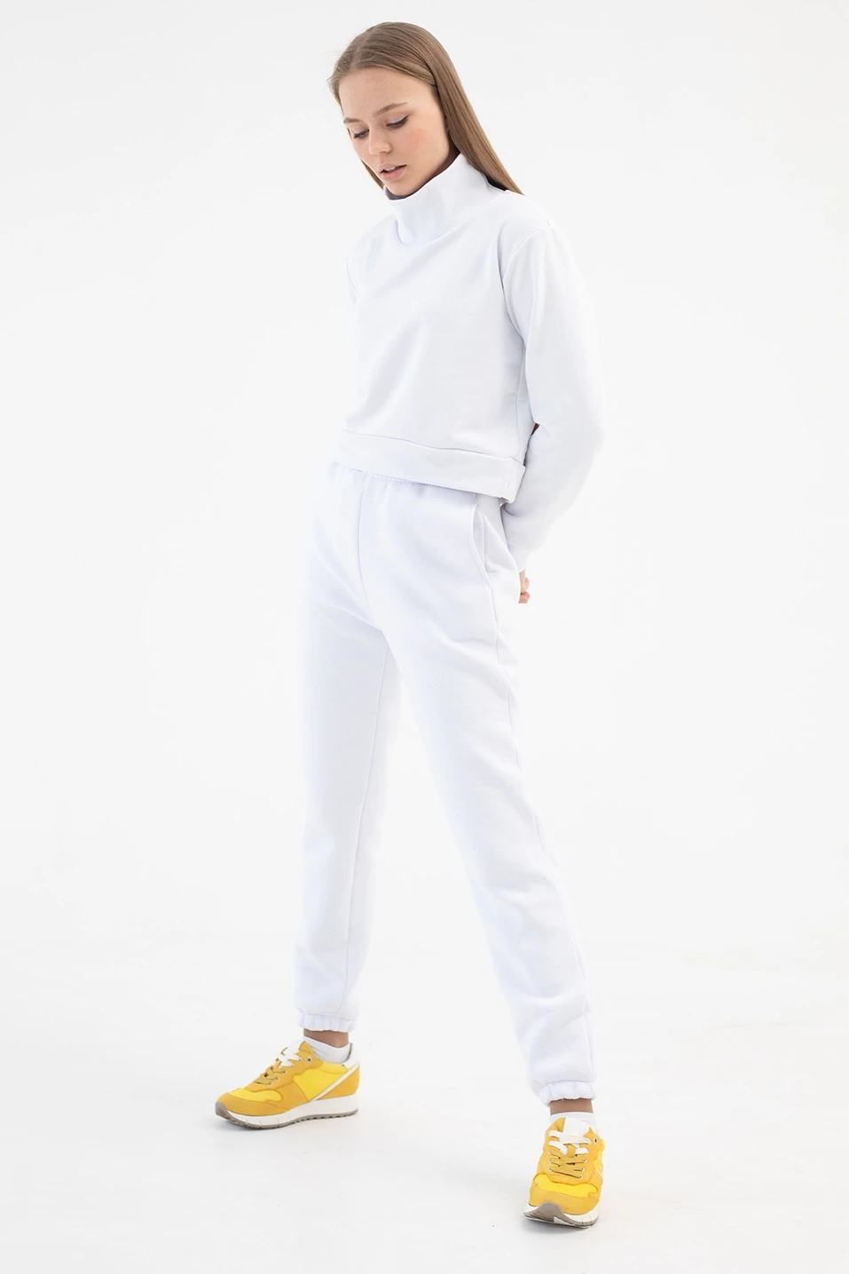 Модель: Прилегающие брюки с резинкой по низу изделия. Пояс цельнокроеный на резинке, дополнительно регулируется белым или черным полиэфирным шнуром с внутренней стороны изделия. Ширина пояса 4 см. Брюки с карманами в боковом шве без молнии. За дополнительную плату изделия могут быть пошиты с двумя прорезными карманами в листочку на молнии. По желанию клиента листочки карманов могут быть изготовлены из материала другого цвета (входит в стоимость наценки за карманы).
