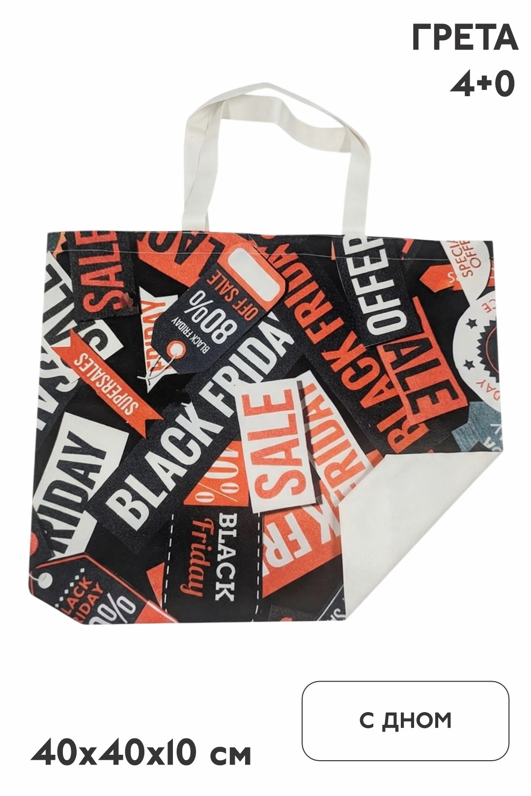 Печать с одной стороны: полноцветная печать осуществляется на одной стороне сумки в процессе производства. Ручки, вторая сторона и дно выполнены из основного материала без печати.