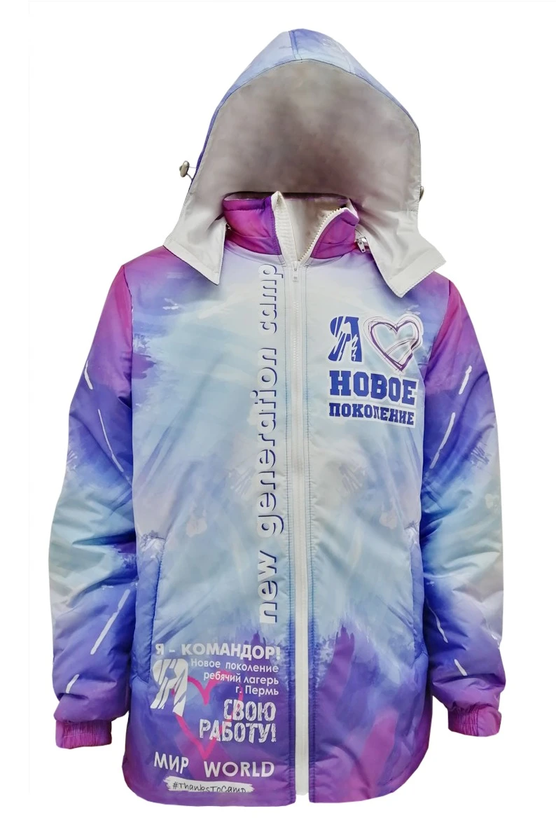 Сублимация. Полноцветное изображение печатается с лицевой стороны методом сублимации на полиэфирных тканях. Изображение располагается в соответствии с лекалом. Нанесение входит в стоимость куртки.