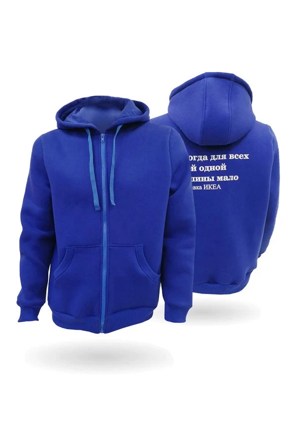 Полноцветный термоперенос (DTF). Максимальный размер нанесения не более формата 30х50 см. Возможна печать на рукавах толстовки.