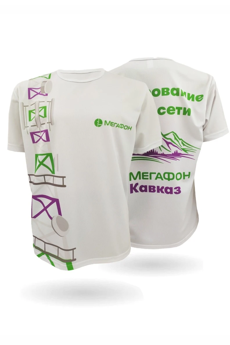 Сублимация. Полноцветная печать осуществляется на всей поверхности футболки в процессе производства. Изображение располагается в соответствии с лекалом. Нанесение входит в стоимость футболки. Совмещение изображения на швах осуществляется за дополнительную плату.