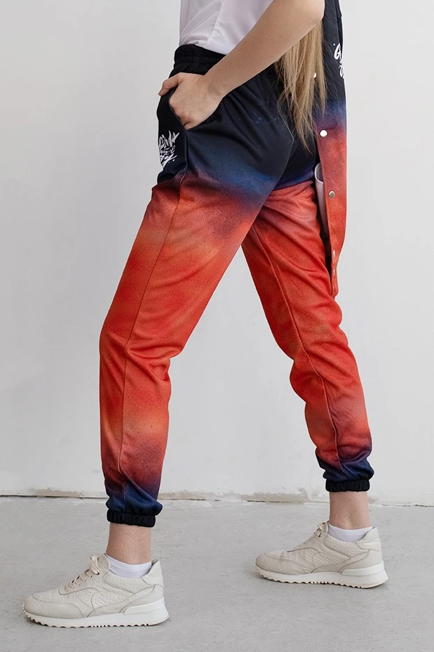 Особенности нанесения: Полноцветное нанесение осуществляется методом сублимации. Изображение размещается в соответствии с лекалом. За дополнительную плату возможно произвести детальное совмещение изображения на швах изделия. Нанесение на брюки входит в стоимость брюк.