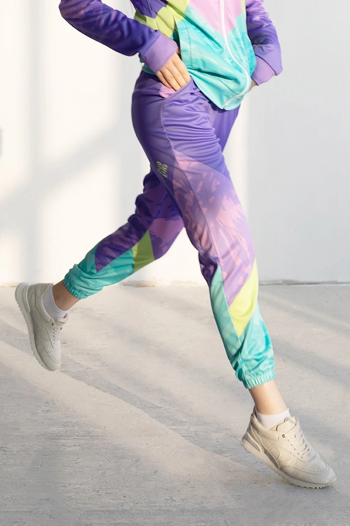 Женские брюки Экшен великолепно подойдут для фитнеса и физических занятий в тренажерном зале. Эта модель спортивных штанов может быть выполнена в любом цветовом оформлении. Более того, на всей поверхности брюк допускается нанесение изображений с помощью сублимационной технологии печати на тканях.