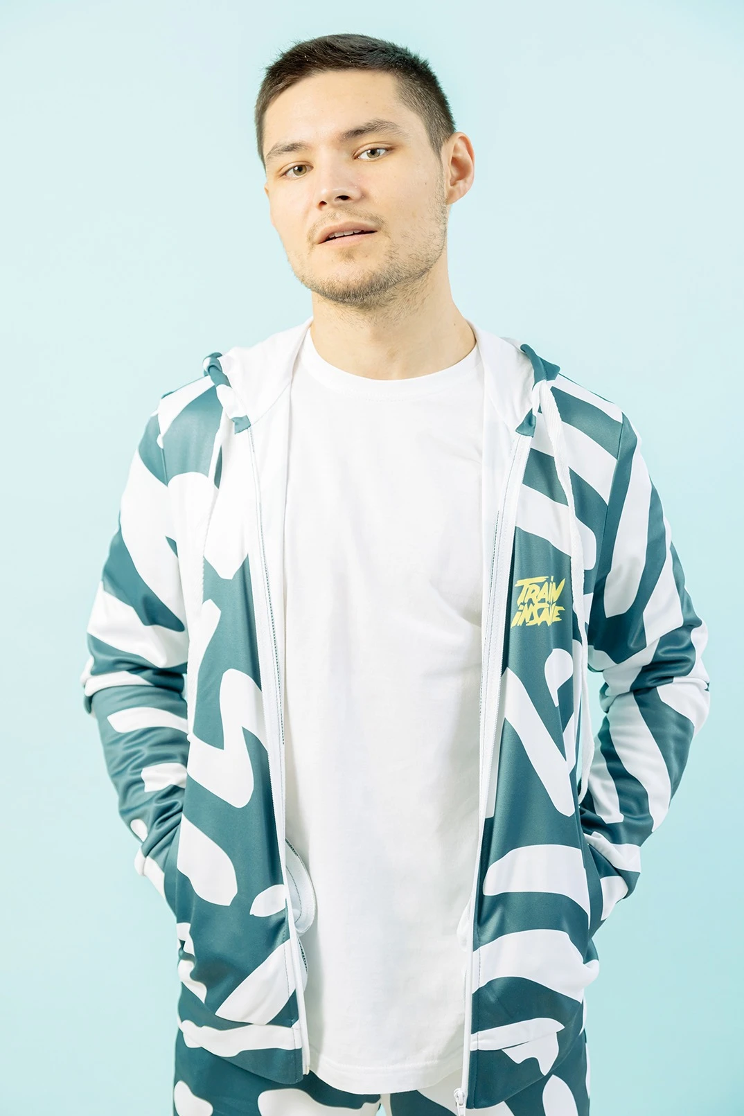 Модель. Прямой силуэт, балахон на молнии без подклада. Длинные рукава. Низ балахона и манжеты рукавов выполнены из сублимационной ткани сандвич браш. Два прорезных кармана в листочку. Капюшон пришивной двухслойный, внутренний слой из сублимационной кулирной глади. Рекомендуется выбрать кулирную гладь цвета меланж, универсален под любой дизайн. У края капюшона продет плоский шнур шириной 15 мм стандартных цветов.