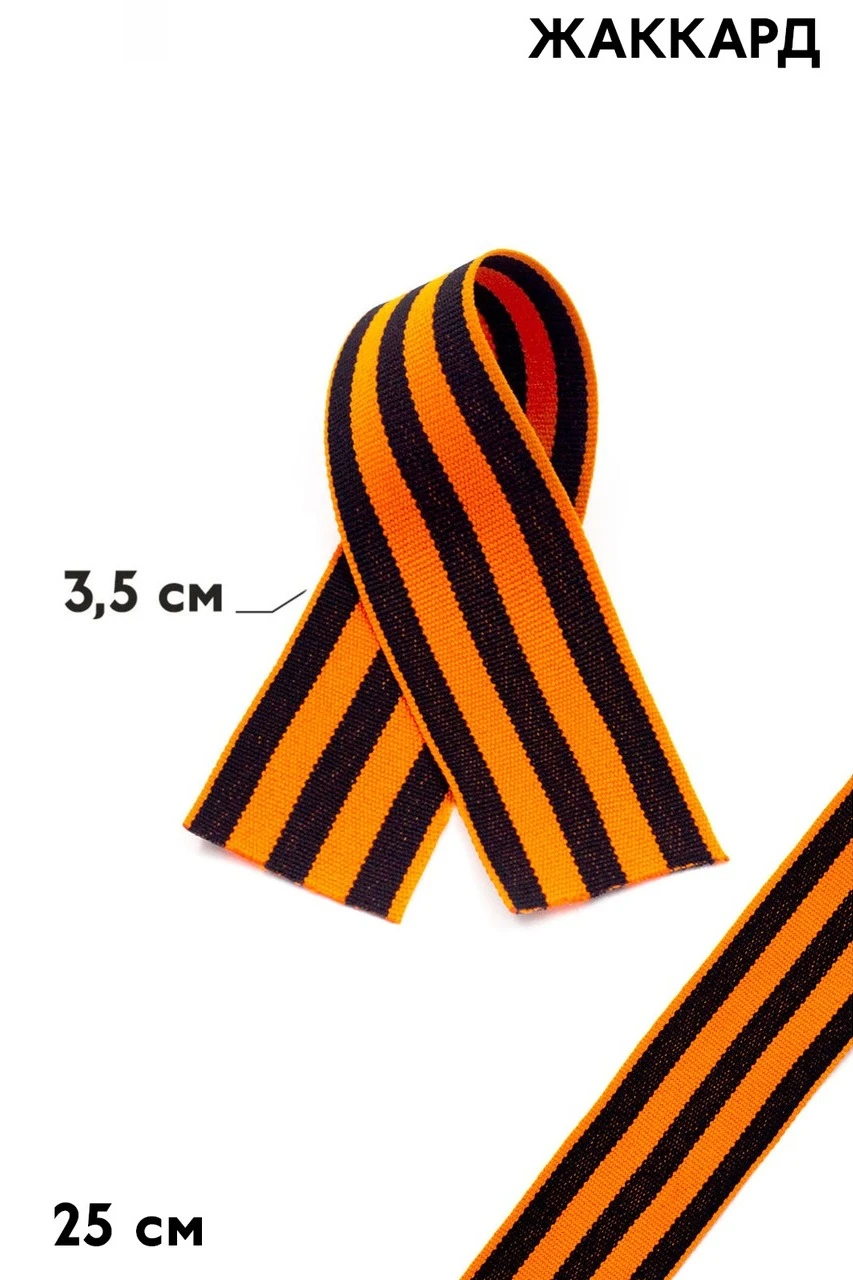 Самой популярной жаккардовой лентой с готовым макетом можно смело назвать георгиевскую (гвардейскую) ленту. Ежегодно в преддверии Дня Победы в России и по всему миру проходит акция "Георгиевская лента", в рамках которой эта лента бесплатно раздаётся в общественных местах. С каждым годом количество раздаваемых лент возрастает. Параллельно с этой акцией многие компании дарят своим клиентам и покупателям георгиевские ленты. Ленты поставляются как в рулонах, так и в нарезанном виде.