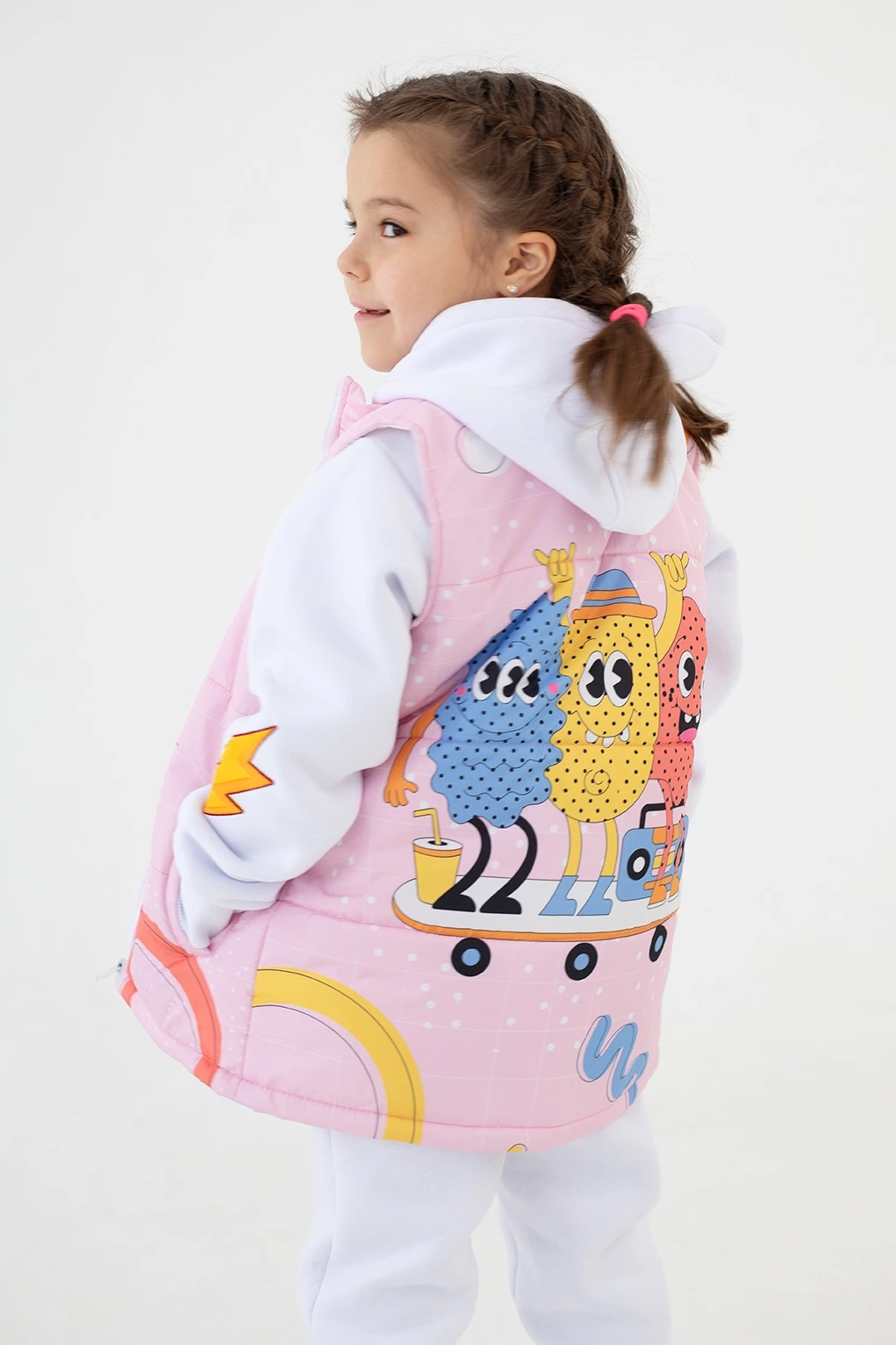 Модель: Жилет Портер детский, с прямым силуэтом, без капюшона. Жилет на молнии, подклад из шелка расцвечивания с прокладкой из синтепона, со стандартной стежкой. Два прорезных кармана в листочку. Для большего удобства при открывании и закрывании на молнии установлены пуллеры.