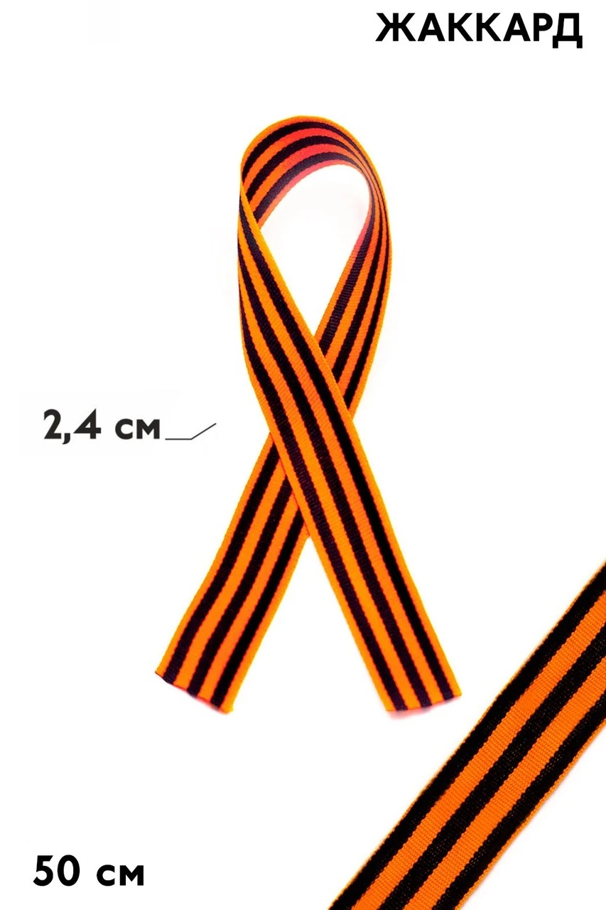 Самой популярной жаккардовой лентой с готовым макетом можно смело назвать георгиевскую (гвардейскую) ленту. Ежегодно в преддверии Дня Победы в России и по всему миру проходит акция "Георгиевская лента", в рамках которой эта лента бесплатно раздаётся в общественных местах. С каждым годом количество раздаваемых лент возрастает. Параллельно с этой акцией многие компании дарят своим клиентам и покупателям георгиевские ленты. Ленты поставляются как в рулонах, так и в нарезанном виде.
