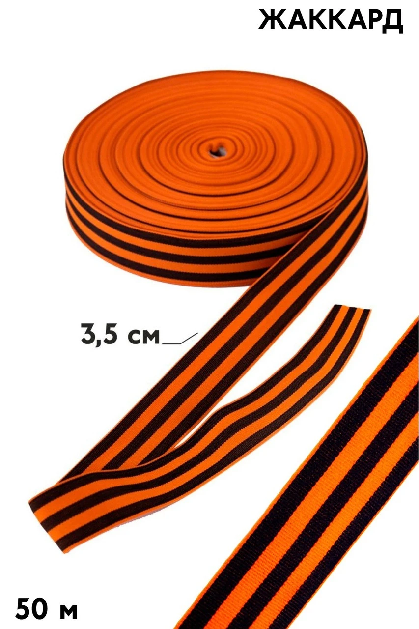 Лента георгиевская в рулоне 50 метров, ширина 3,5 см