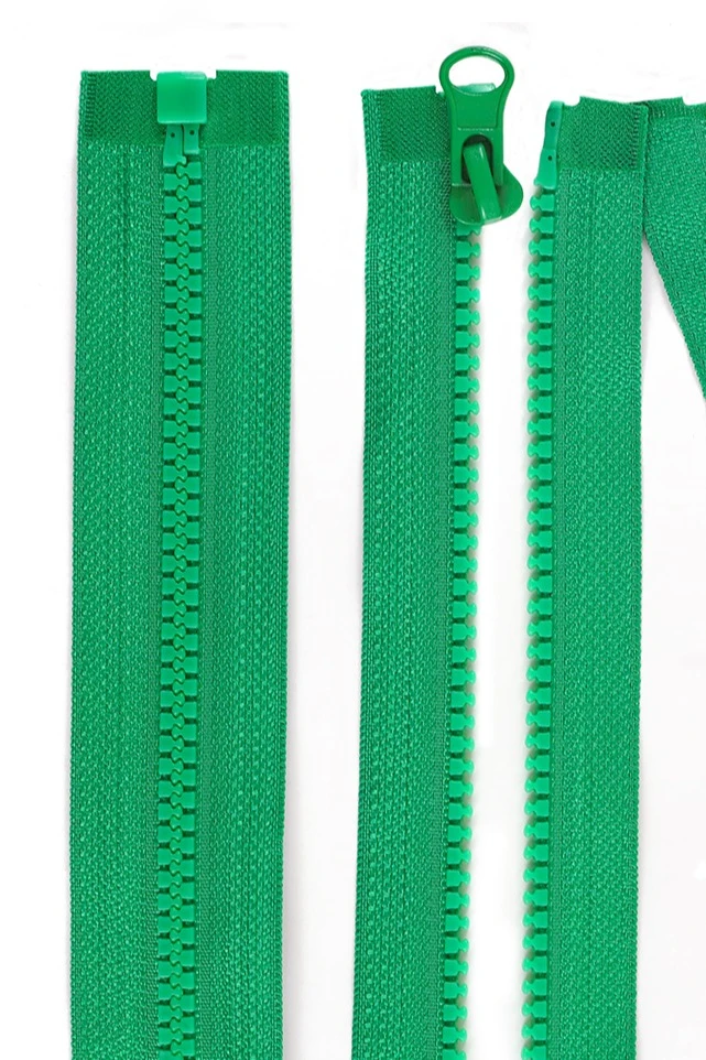 Тракторная молния состоит из отдельных пластиковых зубьев, закреплённых на тесьме. Молния разъёмная - ленты тесьмы молнии не скреплены между собой - используется в одежде, которая должна расстегиваться полностью, например, на куртках, толстовках. Молния тип 5 предназначена для пошива одежды, сумок и рюкзаков.