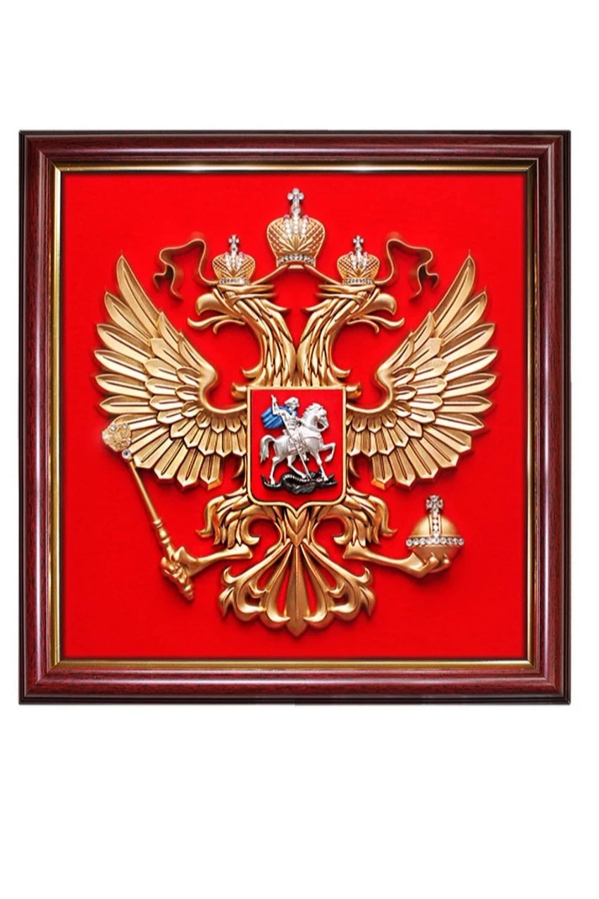 Гербовое панно - это небольшой гербовый орёл, обрамлённый в багет. Панно имеет прямоугольную форму, а не форму французского щита (как герб). Тем не менее популярность такого атрибута достаточно высока. Гербовое панно - отличный подарок и предмет официального интерьера.