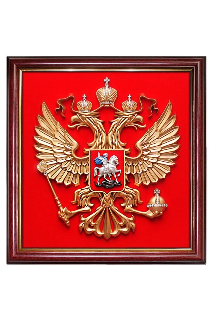 Гербовое панно - это небольшой гербовый орёл, обрамлённый в багет. Панно имеет прямоугольную форму, а не форму французского щита (как герб). Тем не менее популярность такого атрибута достаточно высока. Гербовое панно - отличный подарок и предмет официального интерьера.