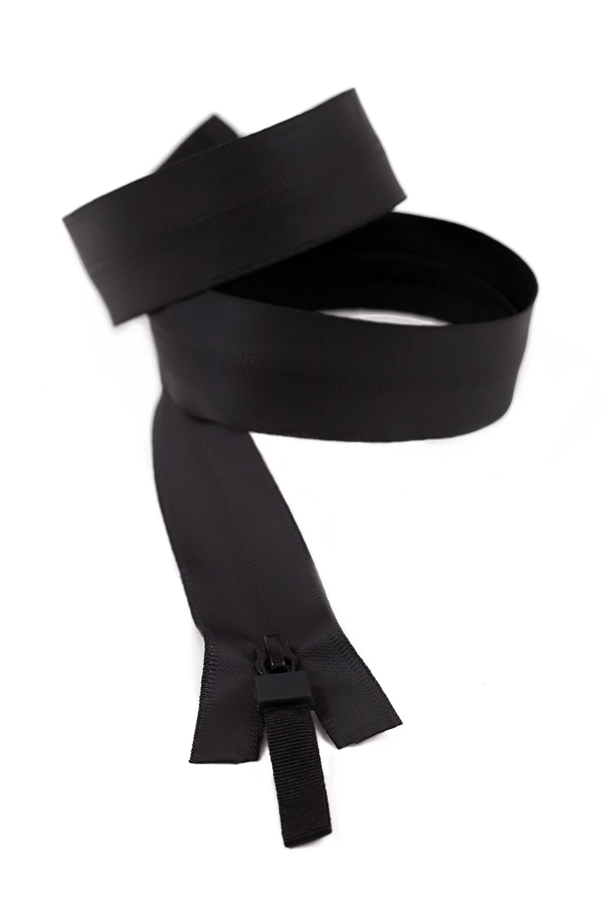 Достоинством спиральной застежки-молнии является мягкая и эластичная звеньевая цепочка с хорошей адаптацией к деформации в сочетании с высокой прочностью. Неразъемные молнии всегда имеют одну большую закрепку в начале и две небольшие на разных сторонах полотна в конце – это предотвращает соскакивание бегунка с застежки. Молния водонепроницаемая - на лицевую сторону такой молнии нанесено водонепроницаемое покрытие. Спираль такой молнии скрыта на изнаночной стороне и не заметна: получается эффект единого полотна.