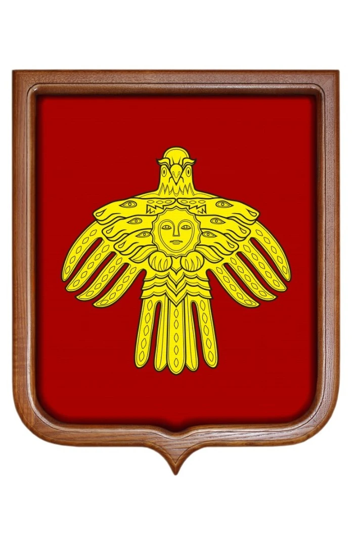 На гербе Республики Коми присутствует изображение, выполненное в так называемом пермском зверином стиле. С геральдического щита на нас смотрит золотая хищная птица. Ее грудь закрыта солнцем в виде женского лика, который окружают головы лосей. Столь необычный образ, изображенный на гербе Республики Коми, содержит глубокий смысл, понятный людям, знакомым с древней местной мифологией.