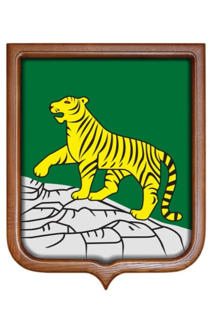 В основу современной версии герба города Владивостока положена старая версия герба, которая была принята в начале девятнадцатого века. Зеленого цвета геральдический щит выполнен во французском стиле. На нем изображен белоснежный скалистый склон, по которому идет золотого цвета тигр. Его правая передняя лапа приподнята вверх.