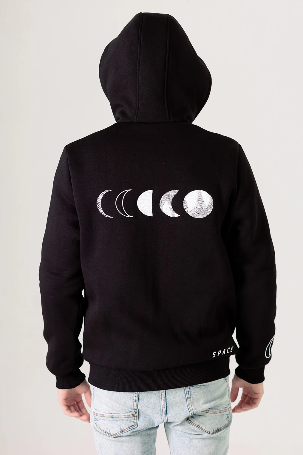Вышивка. Изображение располагается в соответствии с лекалом. Минимальная высота буквенного написания 5 мм. Возможна вышивка на рукавах толстовки.
