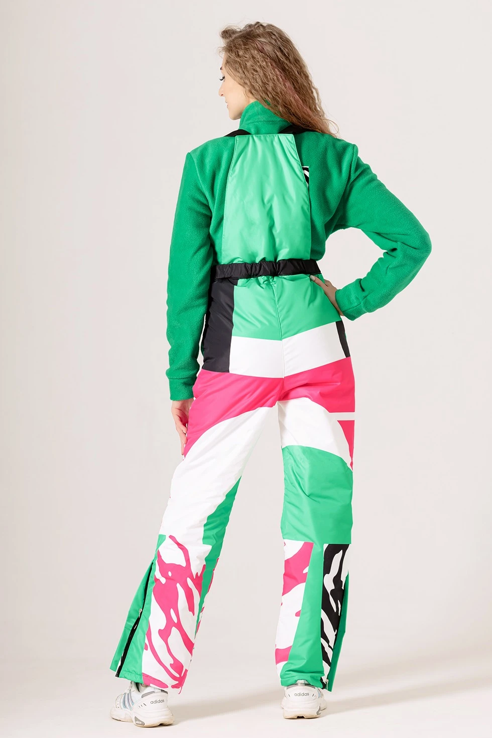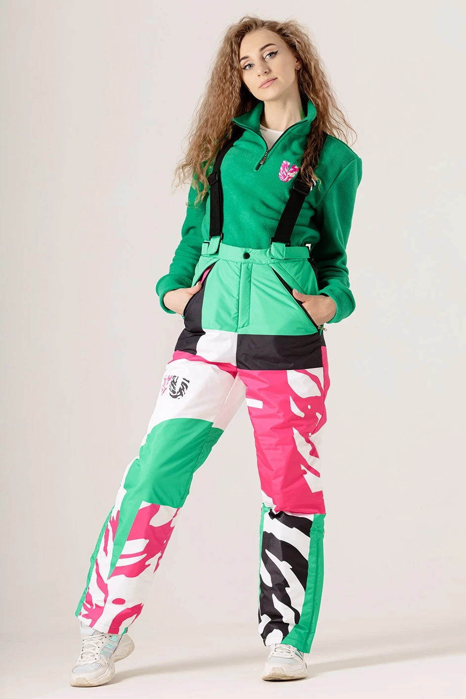 Модель: Брюки прямые утепленные с отстегивающейся спинкой и лямками с регуляторами, верх – курточная ткань, подклад из шелка расцвечивания, в качестве утеплителя - слайтекс (плотность 150 гр/м²). Брюки с поясом на липе с регулировкой на талии при помощи резинки. Ширина брюк регулируется вшитой боковой молнией. Имеют снегозащитные манжеты и два кармана в листочку на молнии.