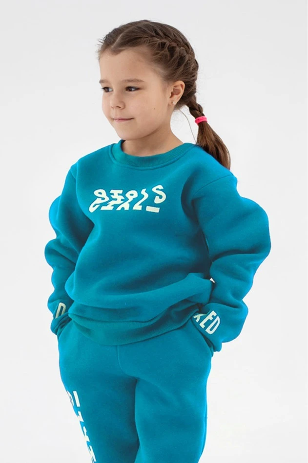 Модель. Толстовка прямого силуэта без молнии, с длинным рукавом. Низ толстовки и рукавов, а также горловина обработаны тканью кашкорсе (специальная тканная резинка) в цвет толстовки. Толстовка без капюшона и карманов.