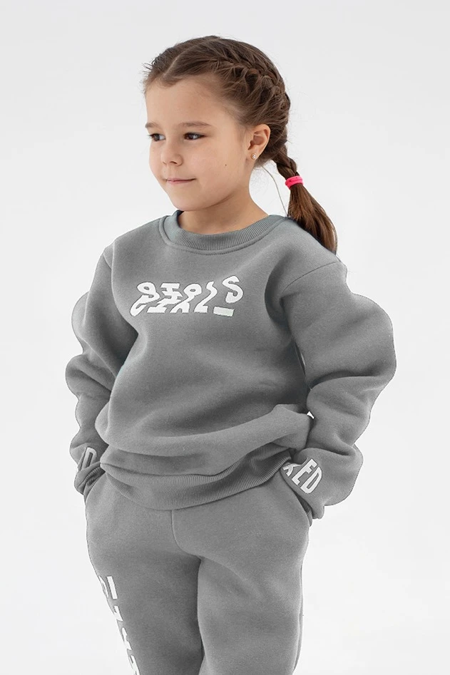 Модель. Толстовка прямого силуэта без молнии, с длинным рукавом. Низ толстовки и рукавов, а также горловина обработаны тканью кашкорсе (специальная тканная резинка) в цвет толстовки. Толстовка без капюшона и карманов.