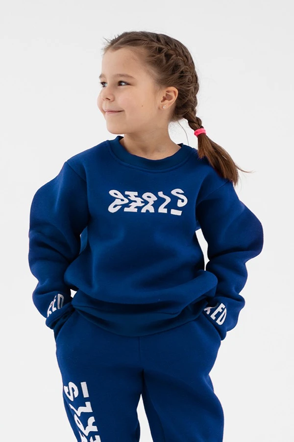 Свитшот Тревис из футера детский, однотонный синий