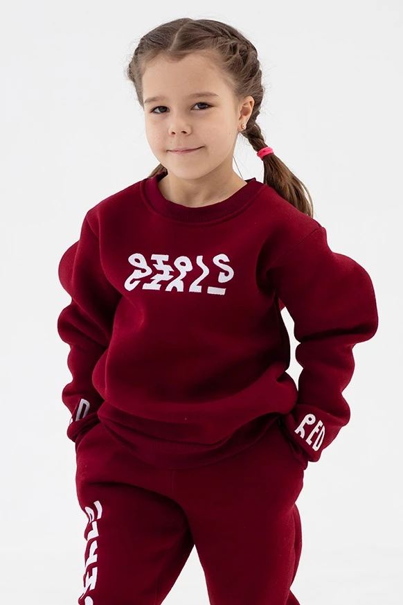 Модель. Толстовка прямого силуэта без молнии, с длинным рукавом. Низ толстовки и рукавов, а также горловина обработаны тканью кашкорсе (специальная тканная резинка) в цвет толстовки. Толстовка без капюшона и карманов.