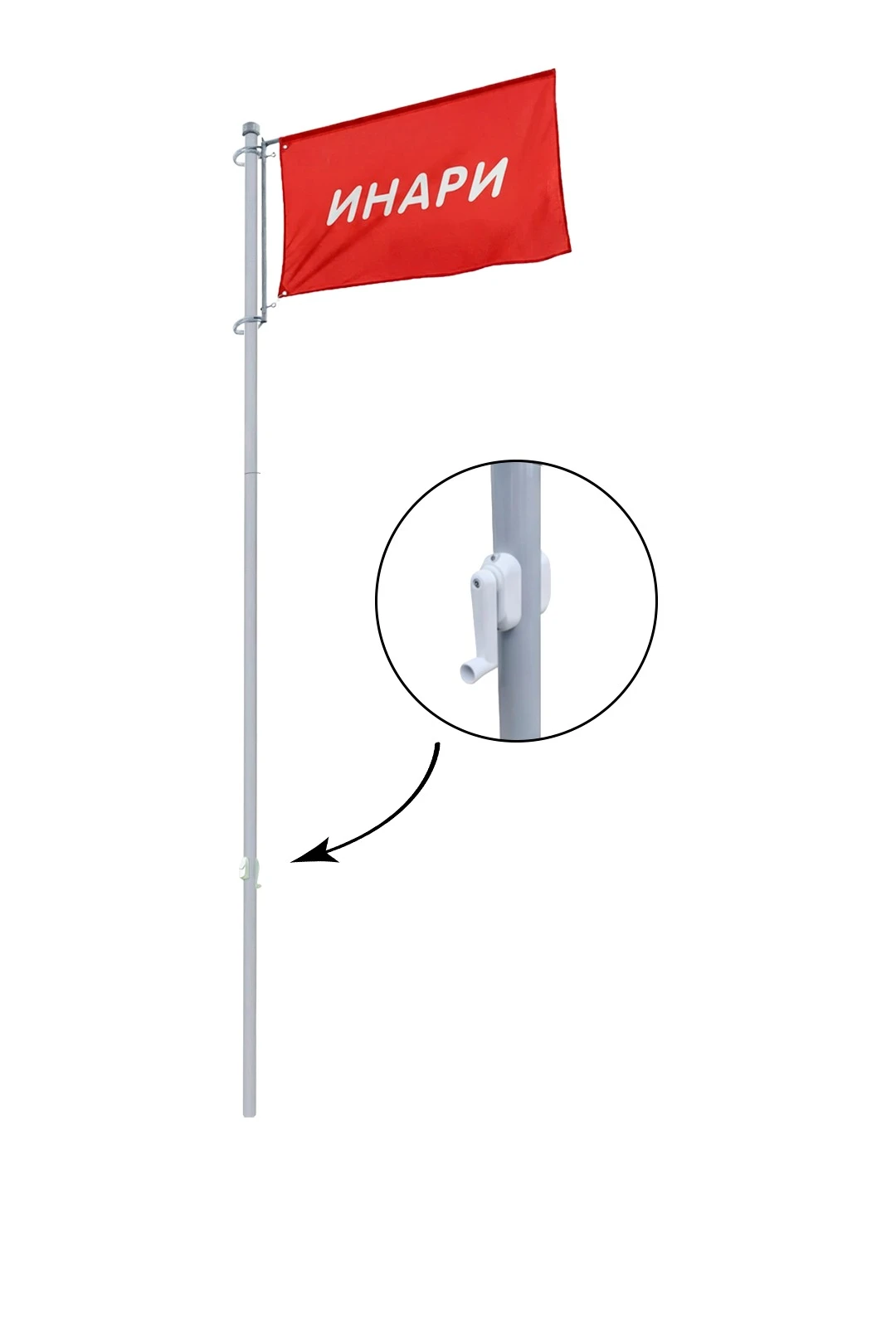 Флагшток Моби Патриот – флагшток с закрытым механизмом с плечом 1,1 м баннер-лифт, механизм подъема лебедка.