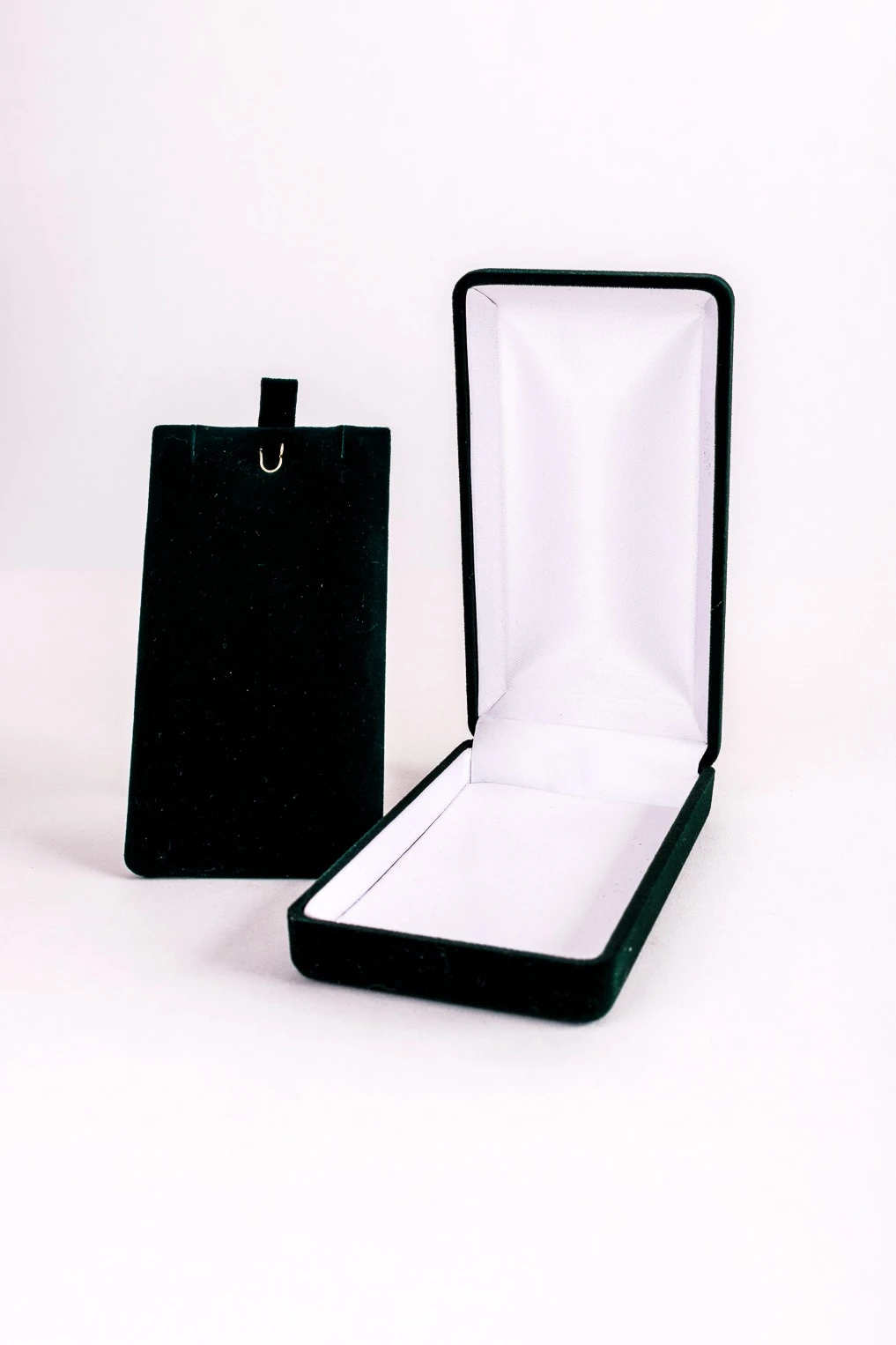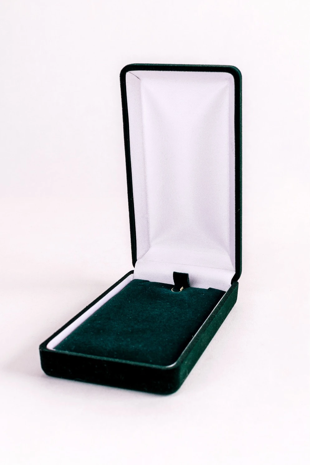 Описание: Изделие представляет собой прямоугольную коробочку, обтянутую снаружи флокированной замшей. Изнутри футляр обтянут белым материалом. Нижняя часть представлена в виде вынимающейся подушки.