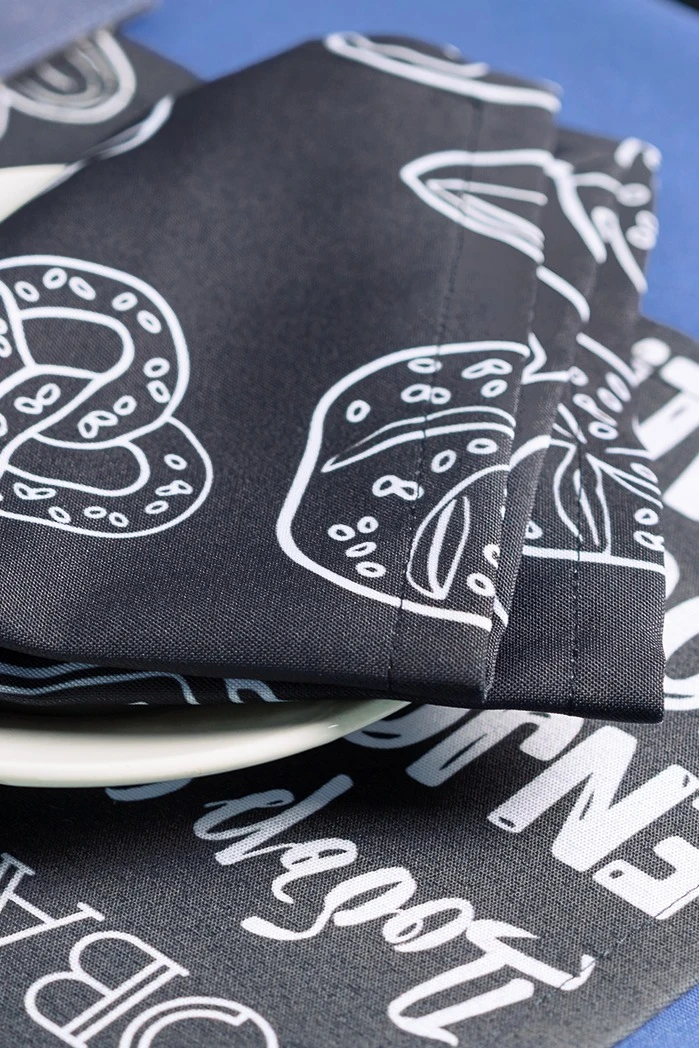 Особенности изготовления: Изображение наносится методом сублимации на всю поверхность салфетки. Изображение на скатерти размещается в соответствии с лекалом.