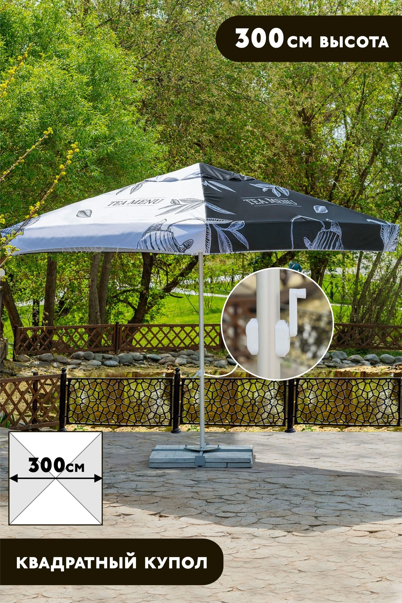 Размеры: Квадратный купол - 3х3 м, количество спиц – 8 шт. Высота в собранном виде без основания 3 м.