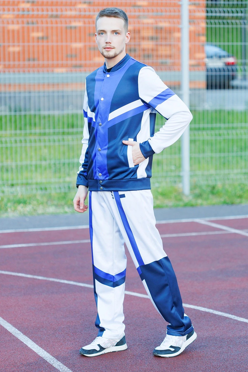 • В костюме возможно сочетать бомбер и брюки разных размеров.