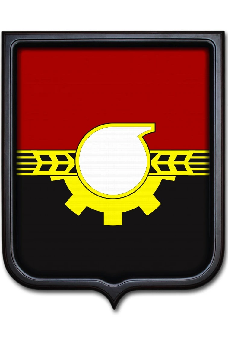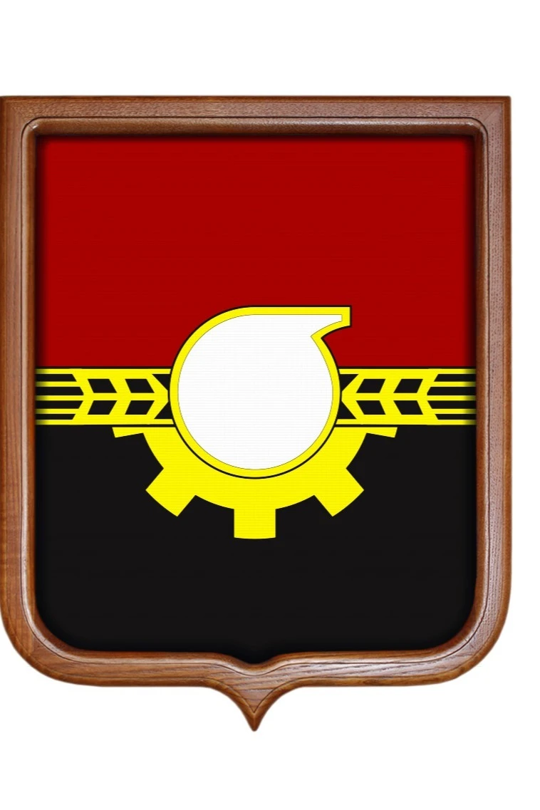 Форма: Герб имеет форму французского щита размером 35х43 см. На оборотной стороне имеется крепление "крокодил" для подвешивания герба на стену.