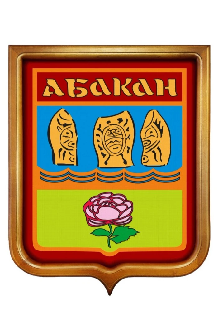Герб города Абакана представляет собой французский геральдический щиток с круглыми нижними уголками и заостренным окончанием. Поделен щит на две половины: верхнюю - лазурную, нижнюю - изумрудную. Вверху изображены три фигуры из камня, внизу - алая роза на стебле. Поверх всего золотыми буквами выложено название города. Окантован щит алой полосой. Герб был утвержден в 1980 году.