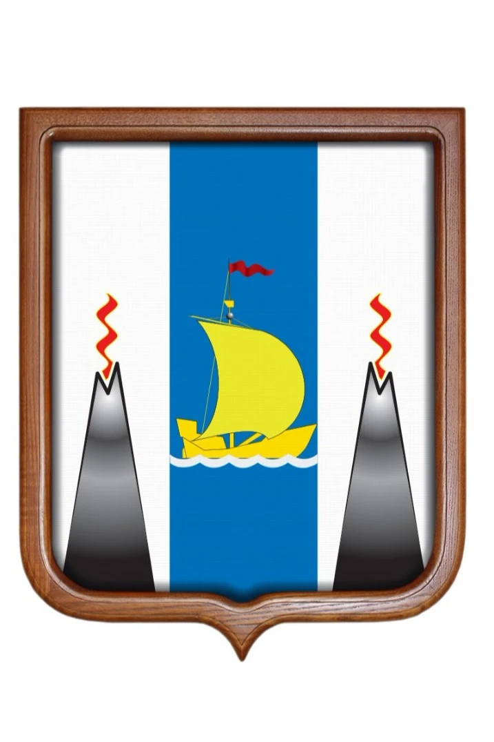 Форма, размер: Герб имеет форму французского щита размером 53х61 см. На оборотной стороне имеется крепление "крокодил" для подвешивания герба на стену.