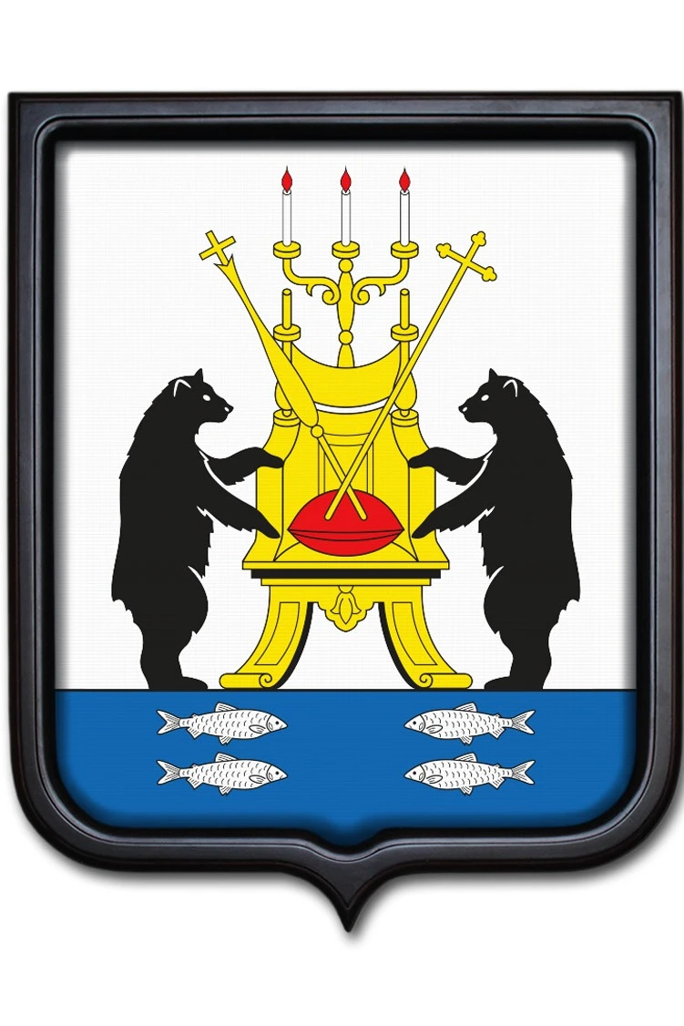 Форма: Герб имеет форму французского щита. На оборотной стороне имеется крепление "крокодил" для подвешивания герба на стену.