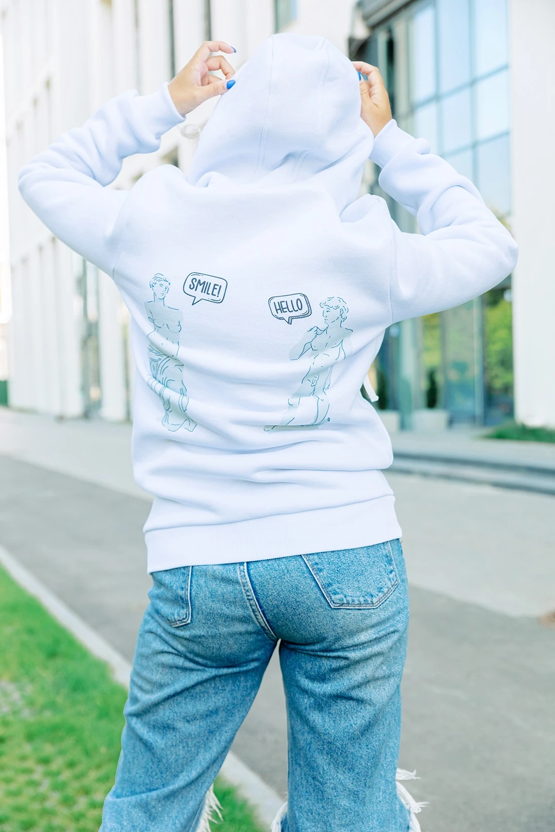 Шелкография. Максимальный размер нанесения не более размера 39х42 см. Изображение располагается в соответствии с лекалом. Возможна печать на рукавах толстовки. Для печати на темных и цветных толстовках необходима подложка белого цвета. Нанесение осуществляется пластизолевыми красками. Возможна печать эффектов.