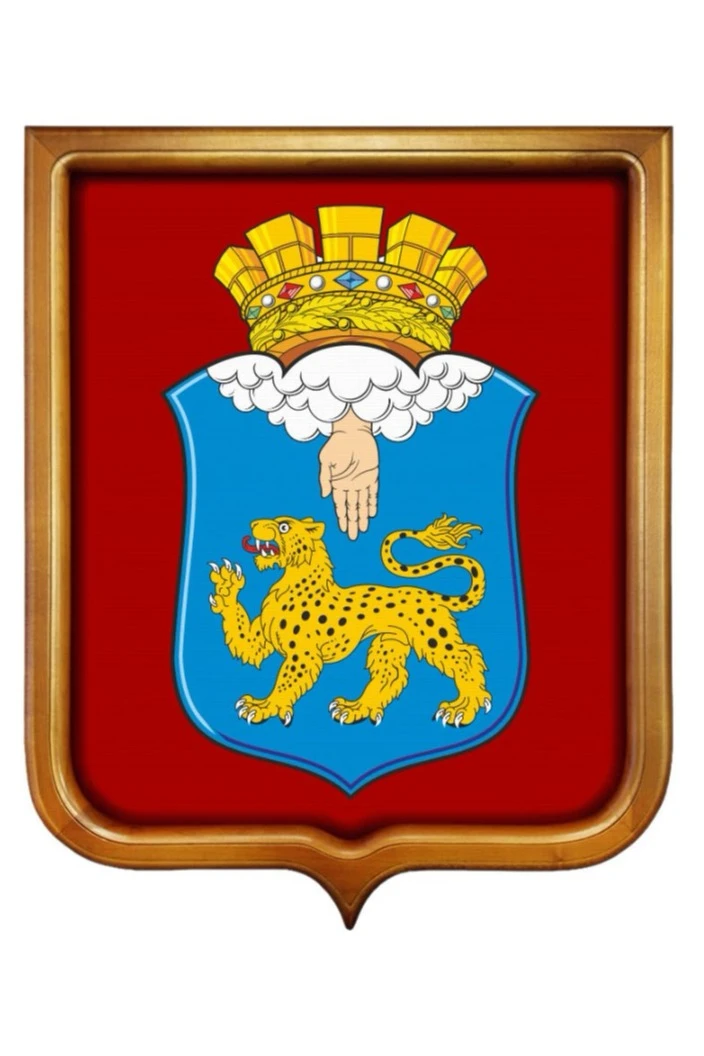Форма, размер: Герб имеет форму французского щита размером 53х61 см. На оборотной стороне имеется крепление "крокодил" для подвешивания герба на стену.