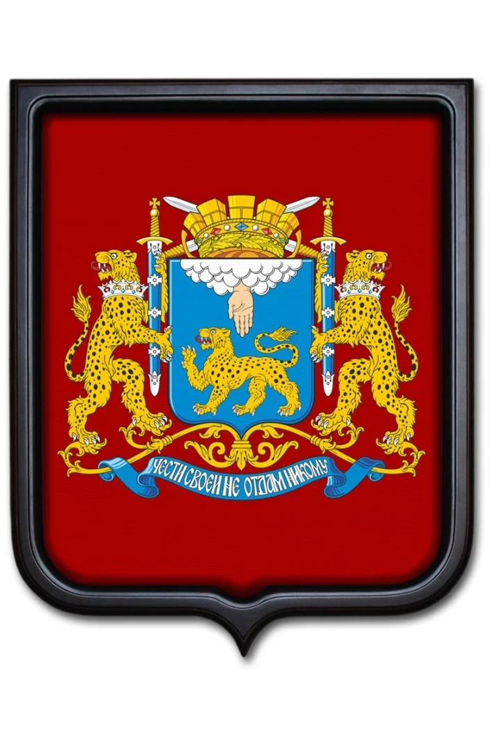 Форма, размер: Герб имеет форму французского щита размером 35х43 см. На оборотной стороне имеется крепление "крокодил" для подвешивания герба на стену.