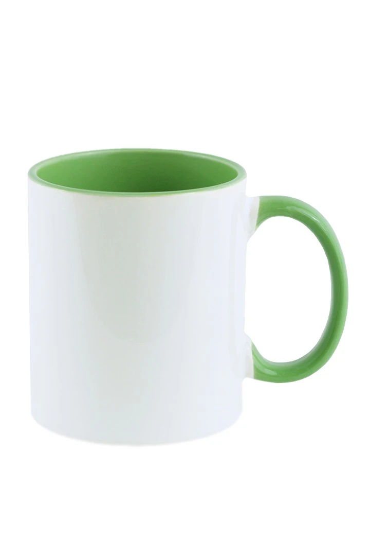Кружка цветная внутри и с цветной ручкой, без печати светло-зeленая