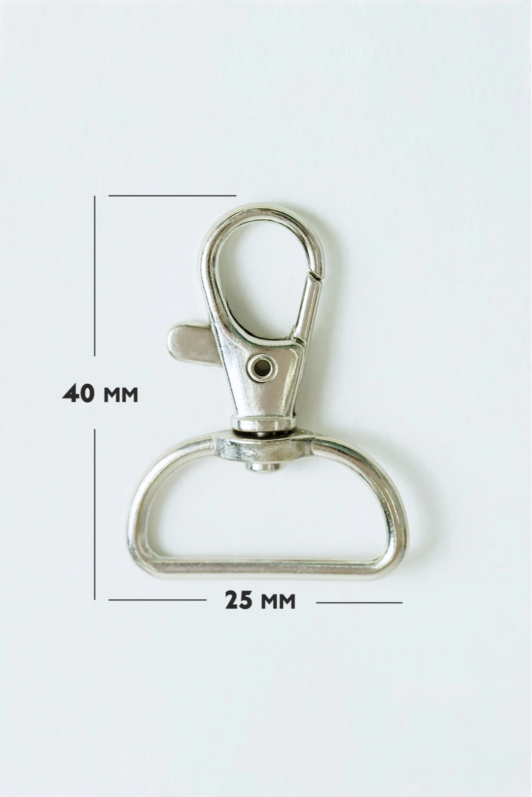 Модель: крепление используется для ленты шириной 2,5 см. Карабин предназначен для крепления бейджа к ленте.