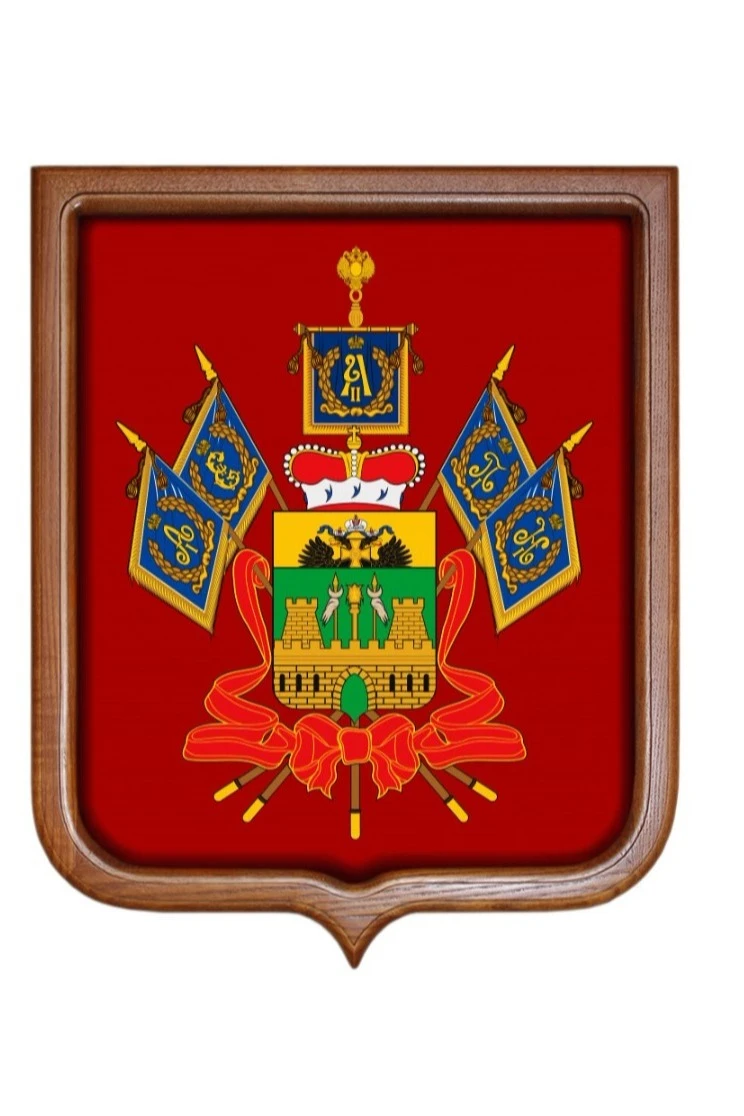 Форма, размер: Герб имеет форму французского щита размером 53х61 см. На оборотной стороне имеется крепление "крокодил" для подвешивания герба на стену.