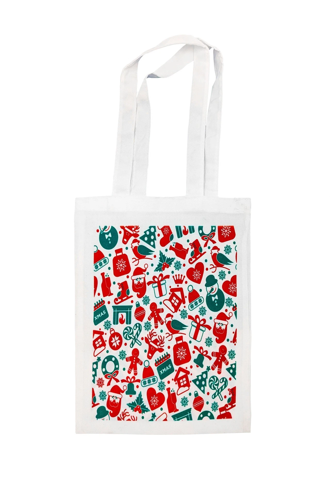Печать с двух сторон: полноцветная печать не более формата 20х28 см осуществляется с каждой стороны, ручки сумки выполнены из основного материала без печати.
