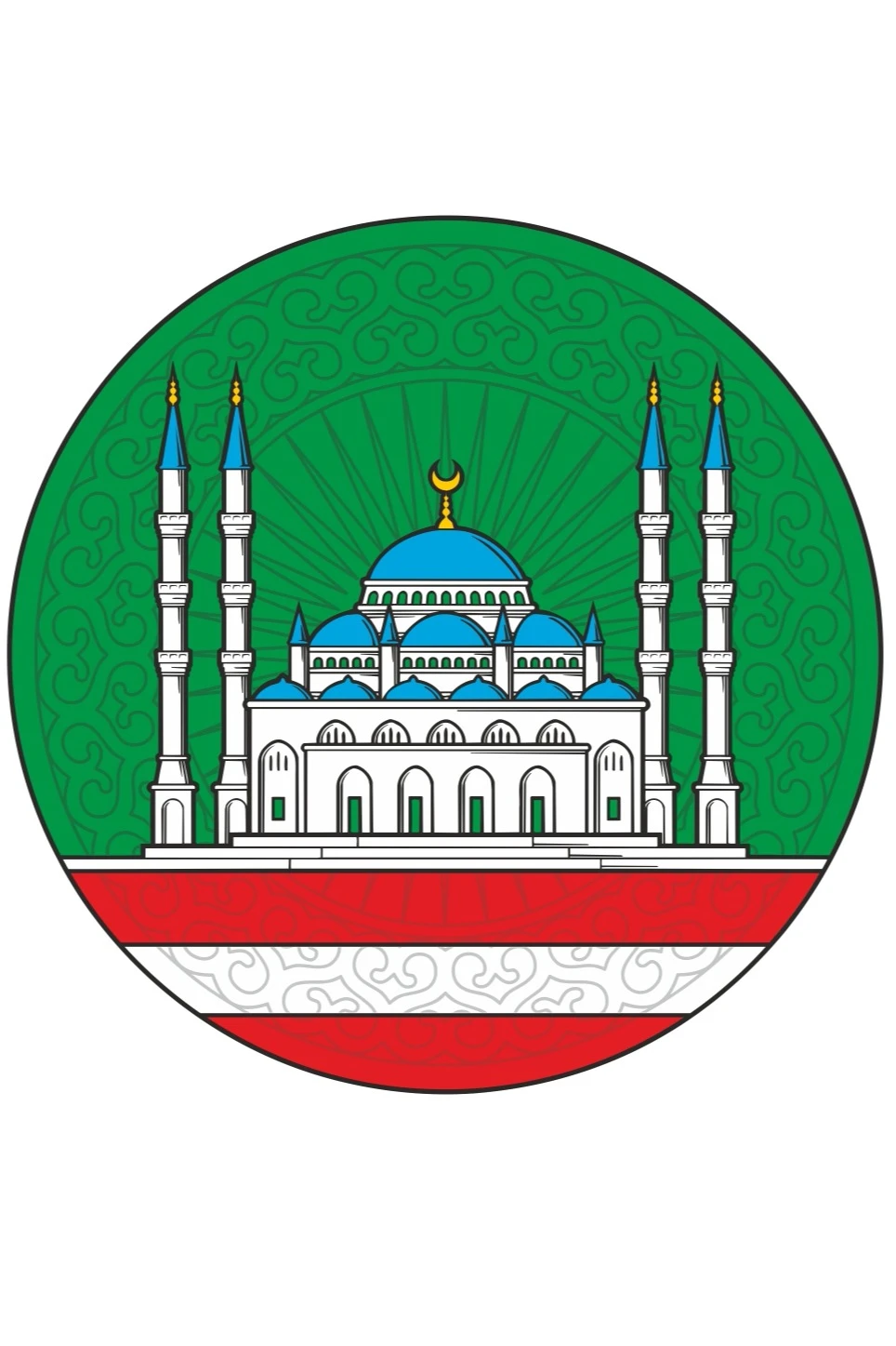 Герб Грозного представлен в виде круга изумрудного цвета, украшенного по всей поверхности вьющимся орнаментом. Нижний участок поделен тремя полосами: две алые и одна белая. По центру круга изображена серебряного цвета мечеть с темно-зелеными дверными проемами, лазурными крышами и куполом. Шпили минаретов и полумесяц над центральным куполом выполнены в золоте.