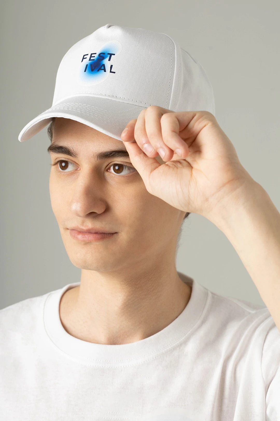 Модель. Купол бейсболки состоит из пяти клиньев. Металлическая рамка для регулирования размера.