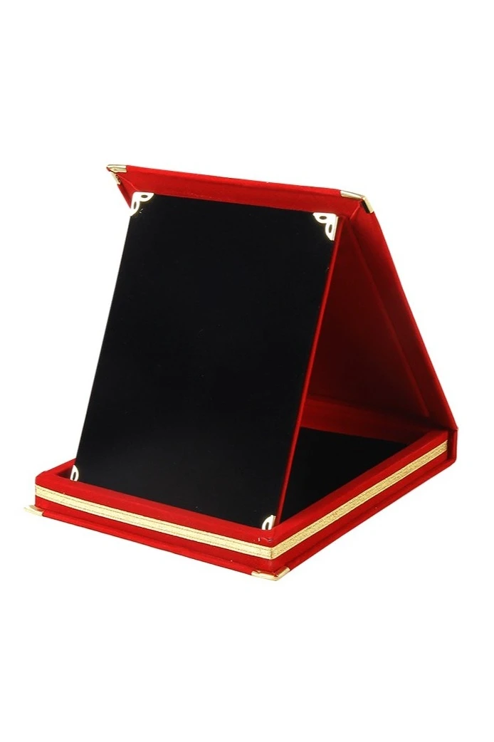 Материал: Футляр изготовлен из флокированной замши синего или красного цвета, и имеет металлическую фурнитуру. Плакетка внутри футляра обтянута черным бархатом и по углам стоят декоративные металлические узоры.