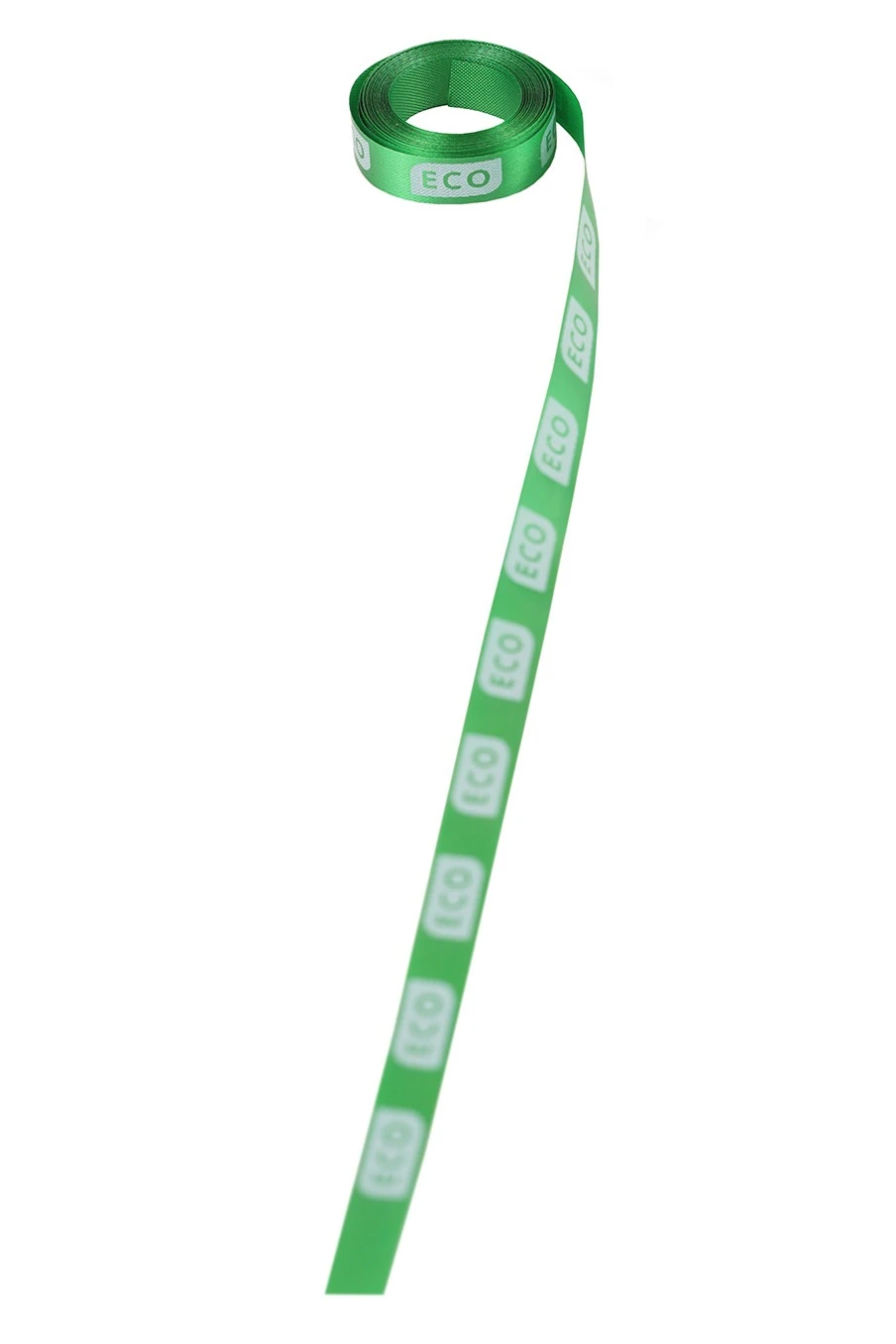Лента сатин ширина 1 см зеленая, печать белым с одной стороны