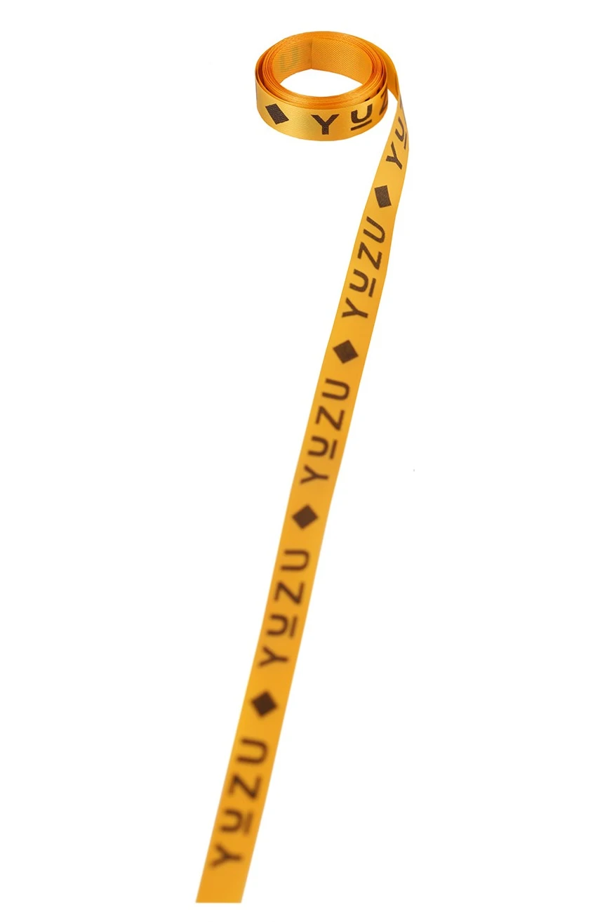 Лента сатин ширина 1 см оранжевая, печать черным с одной стороны