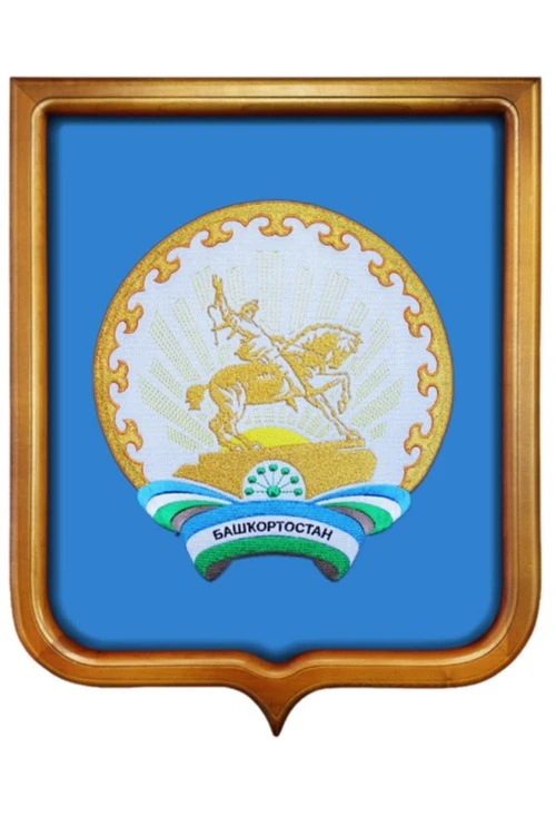 На гербе Башкортостана изображен действующий памятник национальному герою республики Салавату Юлаеву, восседающему верхом на коне. За ним виднеется часть восходящего солнца с широкими лучами. Обрамление герба выполнено орнаментом в народном башкирском стиле. Нижняя часть герба украшена лентой в цветах флага Башкортостана и надписью с наименованием республики.