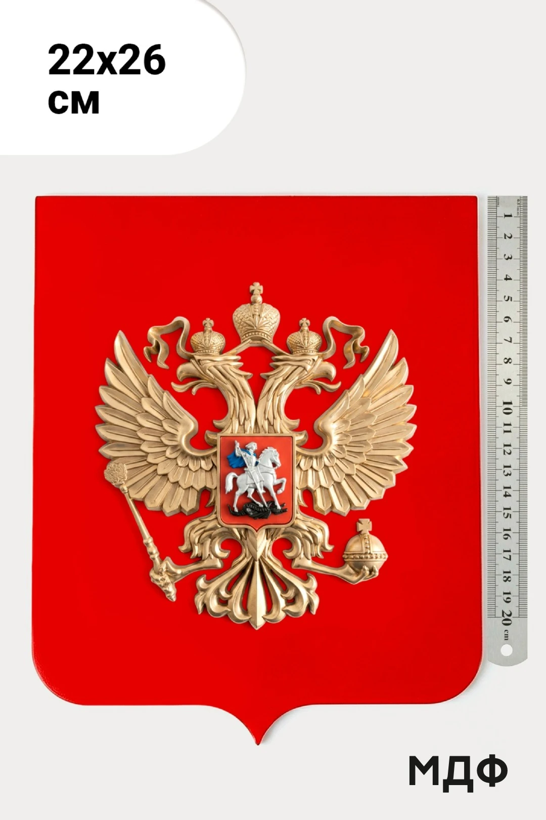 Гербы России на щите из МДФ - самый популярный вариант герба для интерьерного применения. Такие гербы прекрасно вписываются в кабинеты самых разных форматов: актовые залы, залы суда, кабинеты чиновников и руководителей любых уровней.