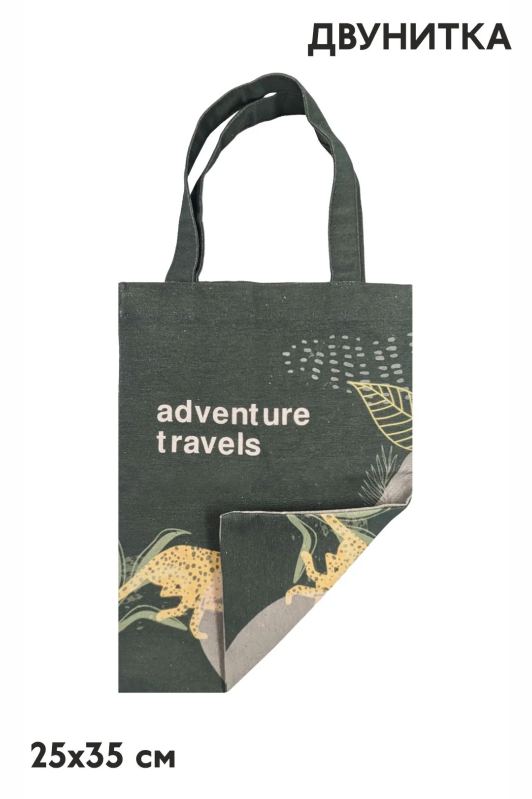 Печать с двух сторон: полноцветная печать осуществляется на хб материале с двух сторон по всей поверхности сумки, ручки сумки запечатываются фоновой заливкой без элементов дизайна.