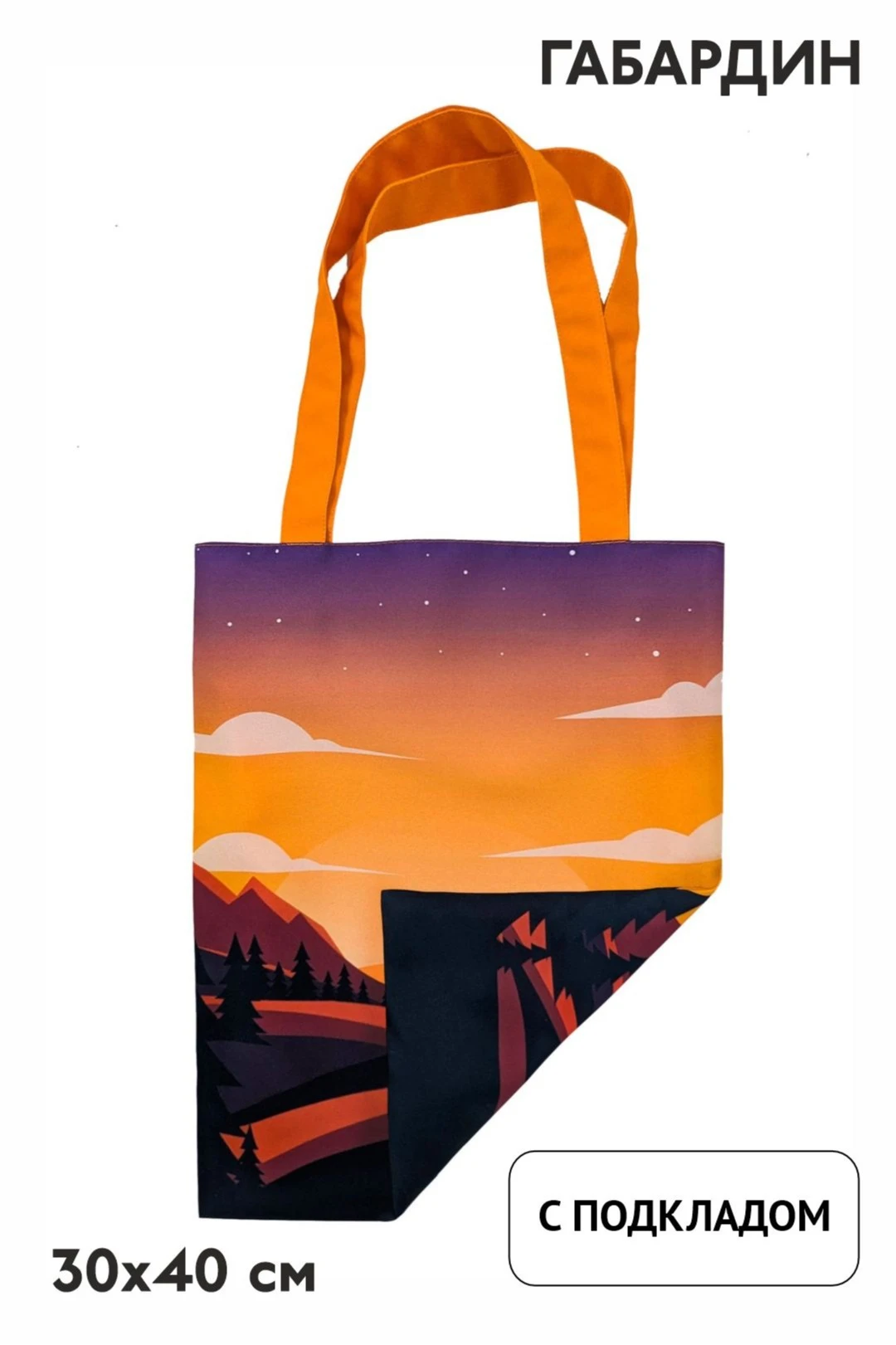 Печать с двух сторон: полноцветная печать осуществляется с двух сторон по всей поверхности сумки, ручки сумки запечатываются фоновой заливкой без элементов дизайна.