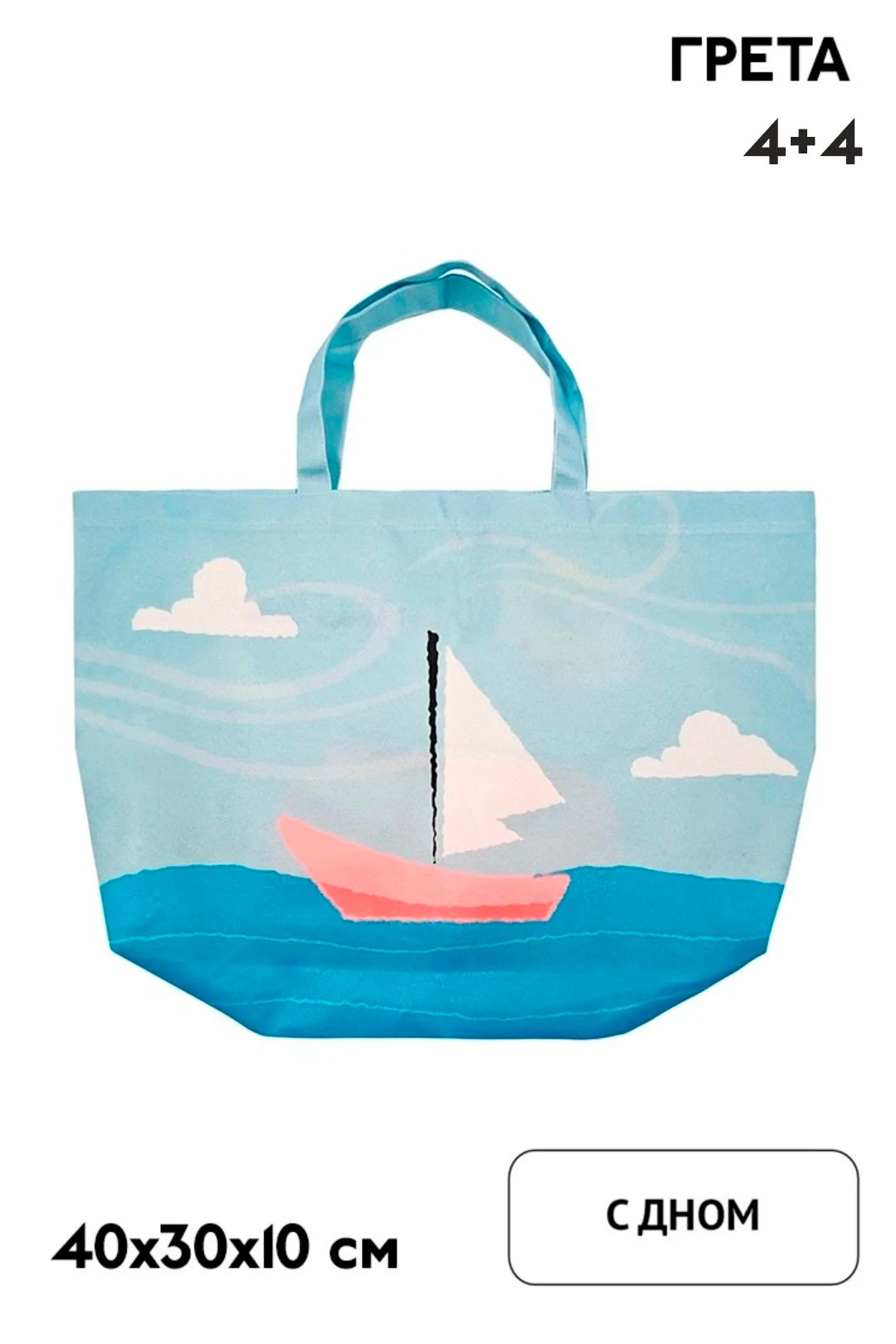 . Полноцветная печать осуществляется с двух сторон и на дне сумки, ручки запечатываются фоновой заливкой без элементов дизайна. Изображение располагается в соответствии с лекалом. Нанесение входит в стоимость сумки.